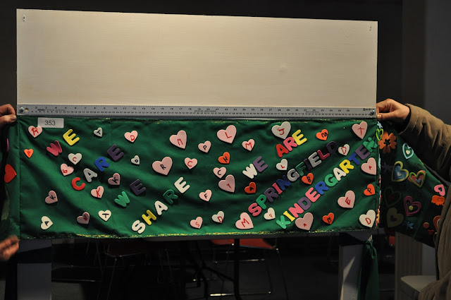 This school won the challenge and had the combined most school participation and most banner segments done before Christmas break in 2012 - The wining school got to dye my hair green with a promise that it would stay green until the parade of banners on May 5th 0f 2013